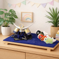 凛とした存在感のある兜に、愛らしい鯉のぼりを添えた、伝統美と可愛らしさを兼ね備えた一飾り。落ち着いた藍色の飾り台が全体を引き締め、和室はもちろん、ナチュラルなリビングや洋室のインテリアにも自然になじみます。