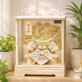 | 製品名 | 五月人形 雅秀作 「白金白印伝 伊達政宗兜」 ガラスケース飾り(50535) |