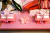 久月作の雛人形 親王ケース飾りです。間口38cmとコンパクトで飾る場所や収納場所を取りません。 ケース枠をはじめピンク色で統一された可愛らしい作品です。小芥子
