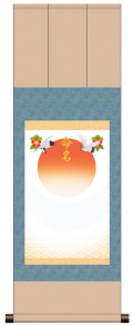 三段表装 命名掛軸「吉祥旭日・ブルー」(名入れ無し)ME-742