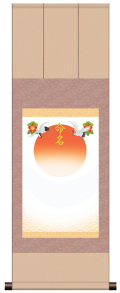 三段表装 命名掛軸「吉祥旭日・ピンク」(名入れ無し)ME-743