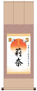 三段表装 命名掛軸「吉祥旭日・ピンク」(名入れ有り)ME-743N /納期2週間