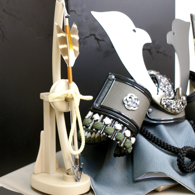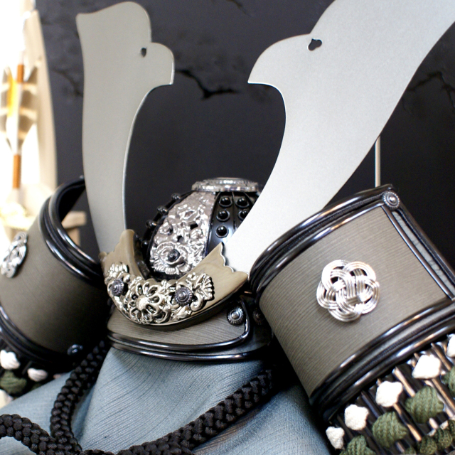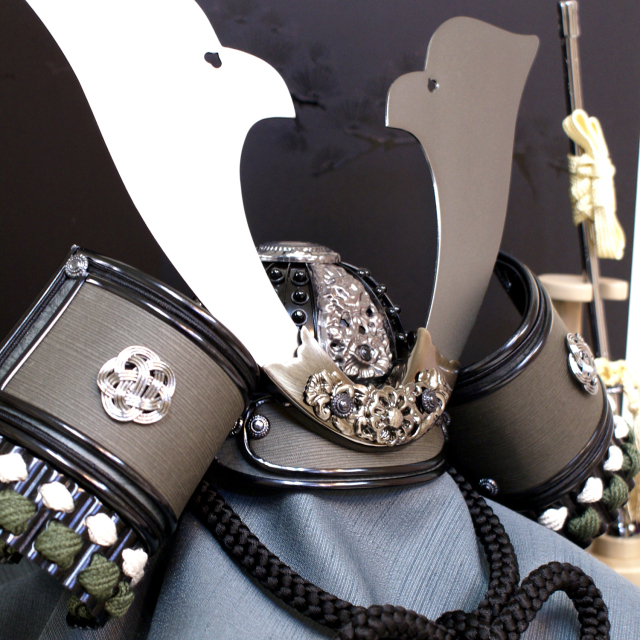 製品名: 五月人形 久月 家紋入れ 兜 コンパクト 収納飾り 人形屋の桜竹 正絹 剥ぎ合わせ 鋲打ち 1156