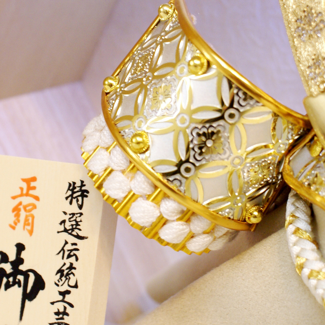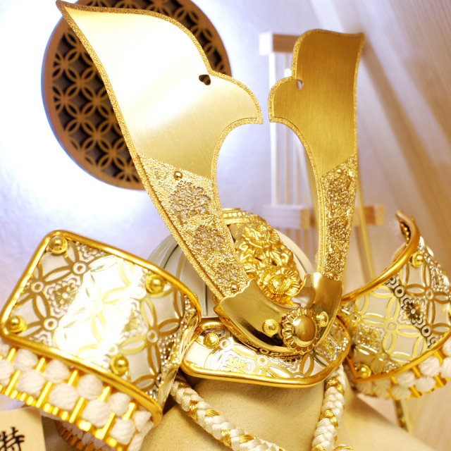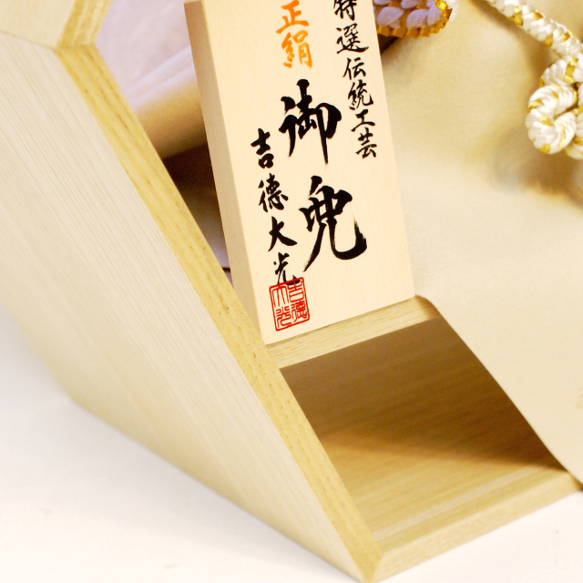 商品説明: 吉徳大光 五月人形 兜飾り おしゃれな六角形の飾り台に飾られた兜飾り。