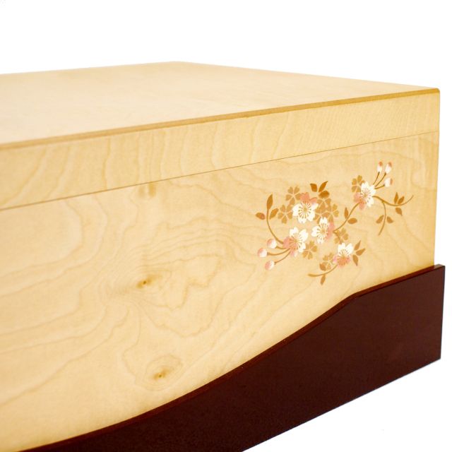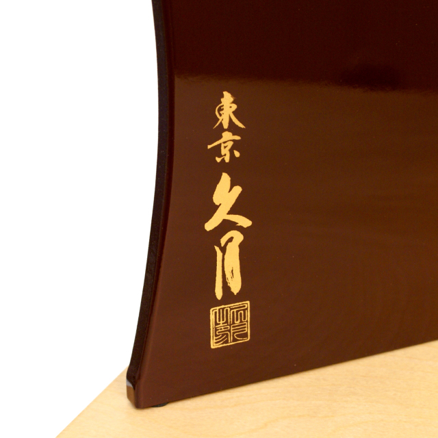 人形の久月 代表作「銘木シリーズ」の”Tochi:栃”です。栃の木材をふんだんに使った高級作品。栃の木目は年輪間隔が大きく、緩やかなカーブを描いている美しさが特徴です。