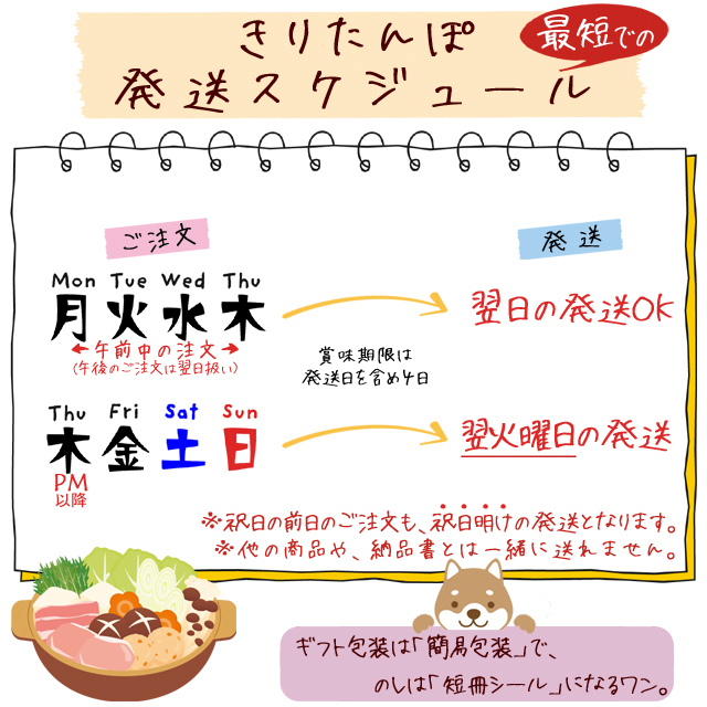 この度は、きりたんぽをお買上げ頂きまして誠にありがとうございました。