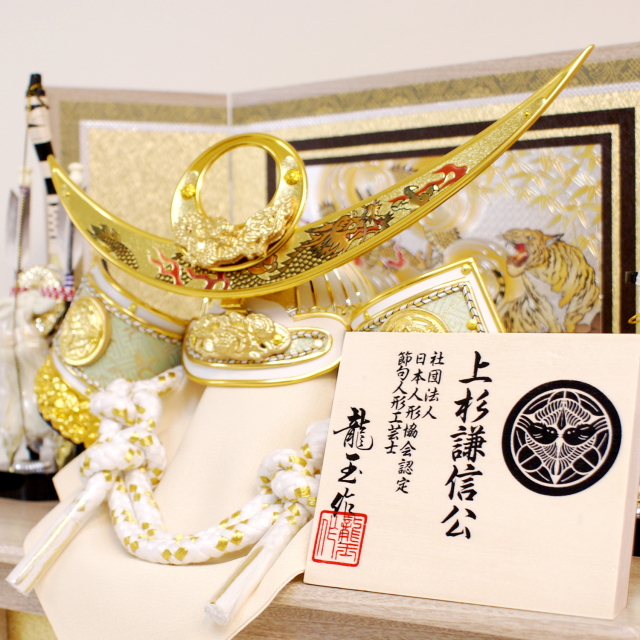 商品説明: 五月人形 コンパクトな収納飾りです。兜は人気の上杉謙信。美し木目とパステル調が優しい雰囲気です。15号/F1503/【全国送料無料】【15時までのご注文:当日出荷可】