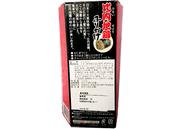 商品説明: 秋田の日本三大地鶏の1つ「比内地鶏」。その伝統の上質な肉質と、こく味豊かな風味を大切に調理しました。ご家庭の食卓で、お気軽に比内地鶏の味わいが楽しめます。ご飯のふりかけの他に、おにぎりや、チャーハン、パスタにも合います。ビン入り70g