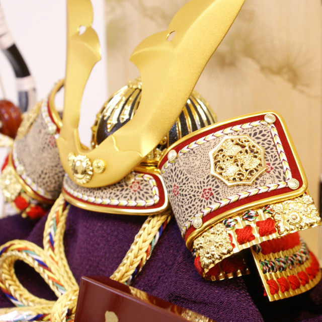製品名: 五月人形 久月 コンパクト 収納飾り 家紋入れ 正絹兜 人形屋の桜竹 安い K1016