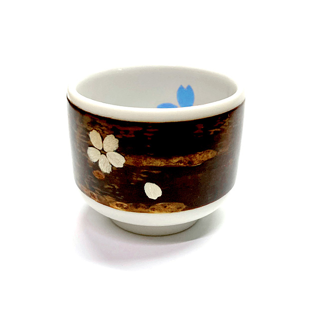 商品説明: 秋田の伝統工芸「樺細工」で造られたぐい飲み。 山桜の皮をなめして造られる秋田古来の伝統技法の樺細工。 陶器製のぐい飲み、山桜の樹皮を貼り付けました。内側のブルーの桜模様がかわいいアクセントになっています。